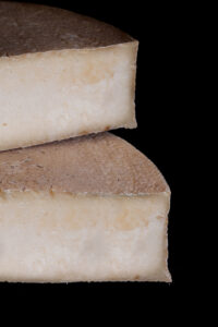 Formmatge semi curat de pasta premsada i escorça natural amb una textura elàstica amb petits orificis mecànics.